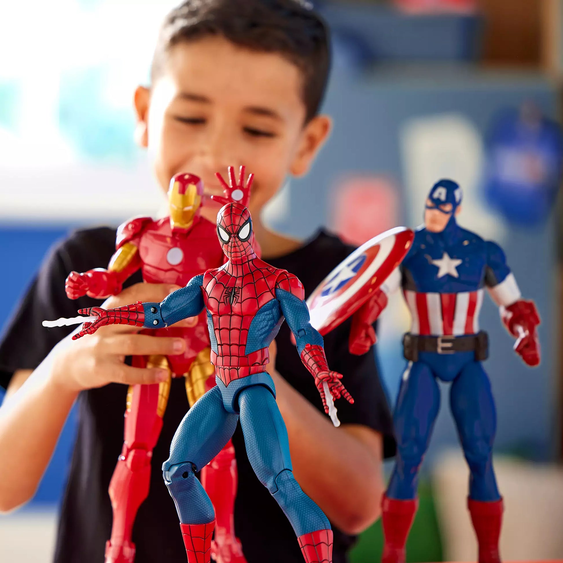 Spider-Man has plenty to say for himself as this talking action figure. Press the spider symbol on his chest to hear 12 character phrases including, ''Just your friendly neighborhood Spider-Man,'' ''With great power comes great responsibility,'' and ''Yeah, I'm buddies with Captain America. It's not a big deal.'' Featuring multiple points of articulation, Spidey can shoot webs from his wrists, so villains beware!