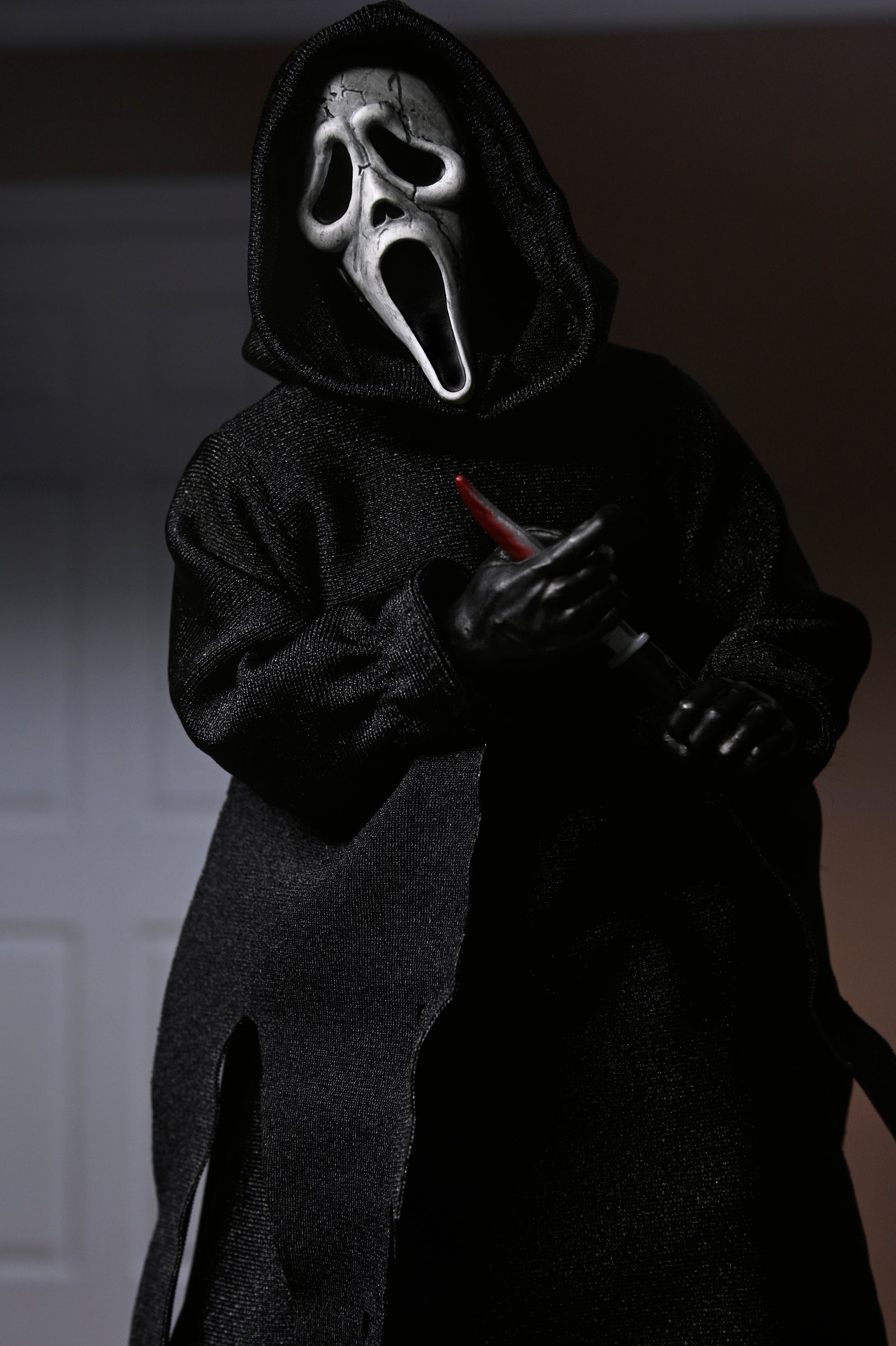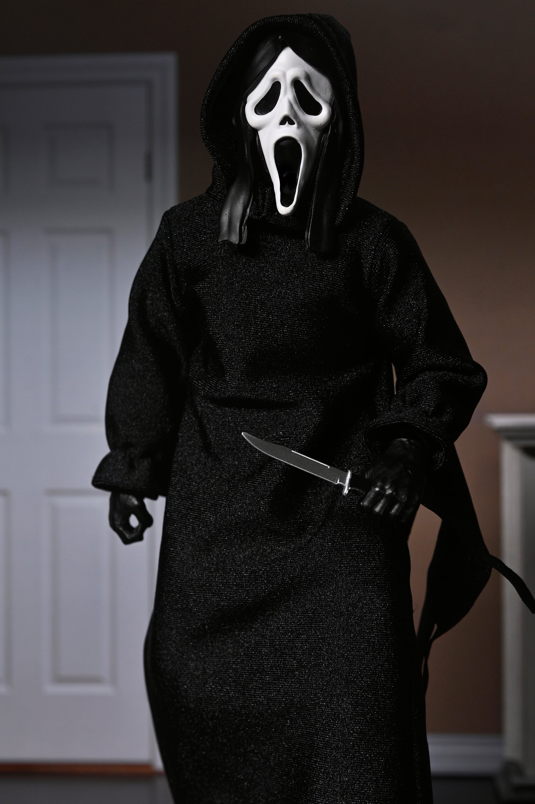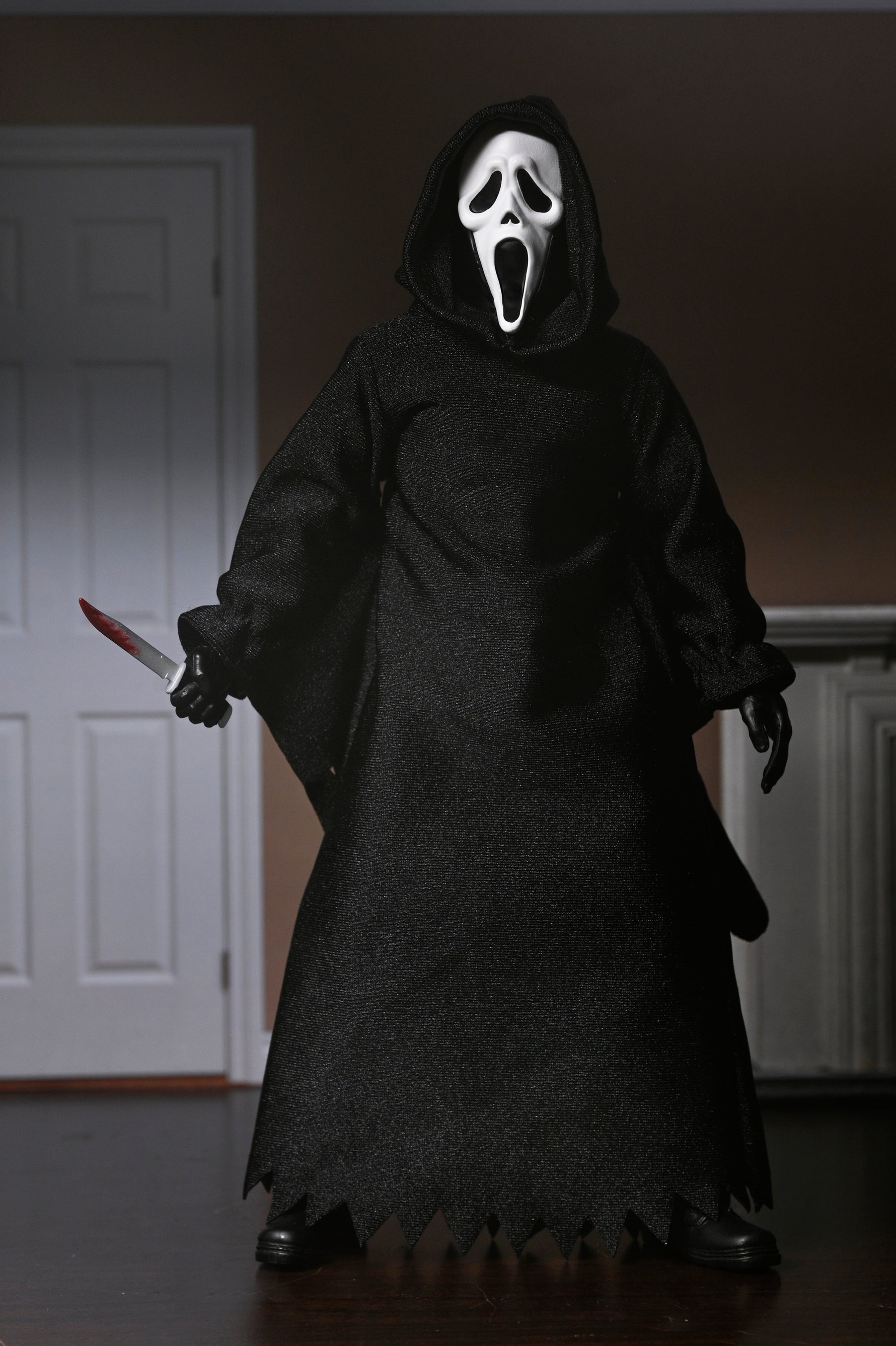 Ghost Face lives! The iconic slasher returns with a terrifying new twist in this updated 8-inch clothed action figure from NECA. Based on Fun World’s legendary costume, this version brings the “Icon of Halloween” to life with updated masks and tailored soft goods clothing, which pays homage to vintage toy lines. Featuring interchangeable face plates, heads, and hands, this figure also includes both clean and bloodied knives, and a voice changer. Ghost Face comes in new, redesigned window box packaging perfect for collectors!